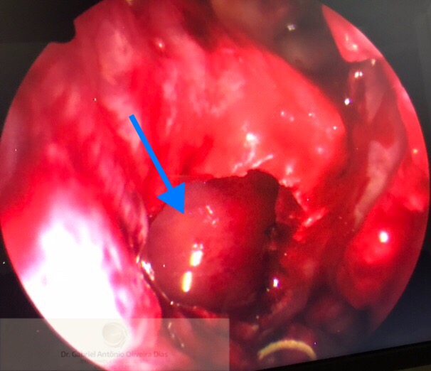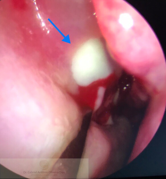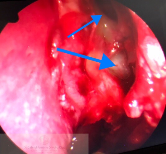 Abertura do seio maxilar direito (após retirada da secreção mucopurulenta)