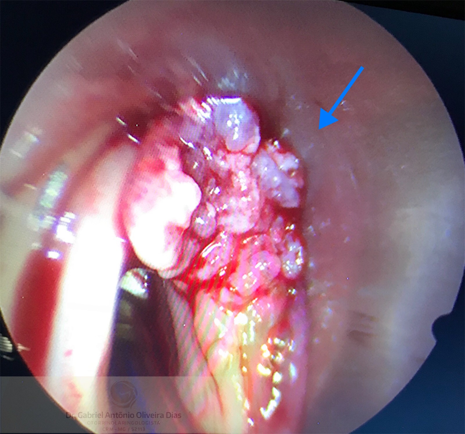 Caso 1: Câncer (carcinoma) inicial em prega vocal direita.